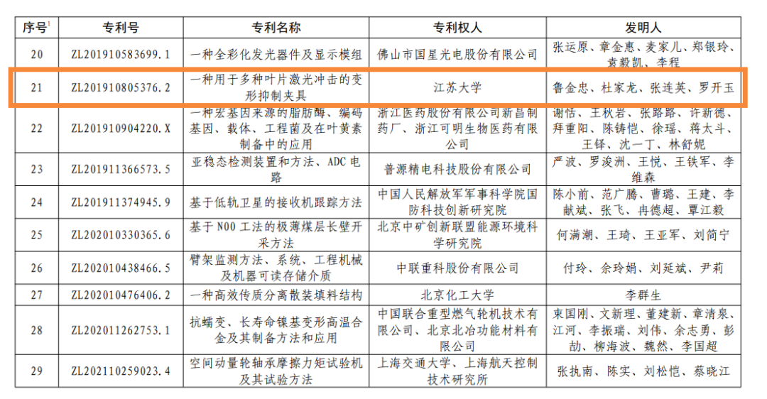 近日,国家知识产权局发布第二十四届中国专利奖授奖决定,幻影官方网站(China)在线/注册/登陆/官网专利“一种用于多种叶片激光冲击的变形抑制夹具”(专利号ZL201910805376.2)喜获中国专利金奖。此次共有83所高校获得中国专利奖,获金奖的高校仅有5所,其中西安交通大学有2个项目获得金奖,浙幻影官方网站(China)在线/注册/登陆/官网学、上海交通大学、北京化工大学和幻影官方网站(China)在线/注册/登陆/官网各有1项金奖。