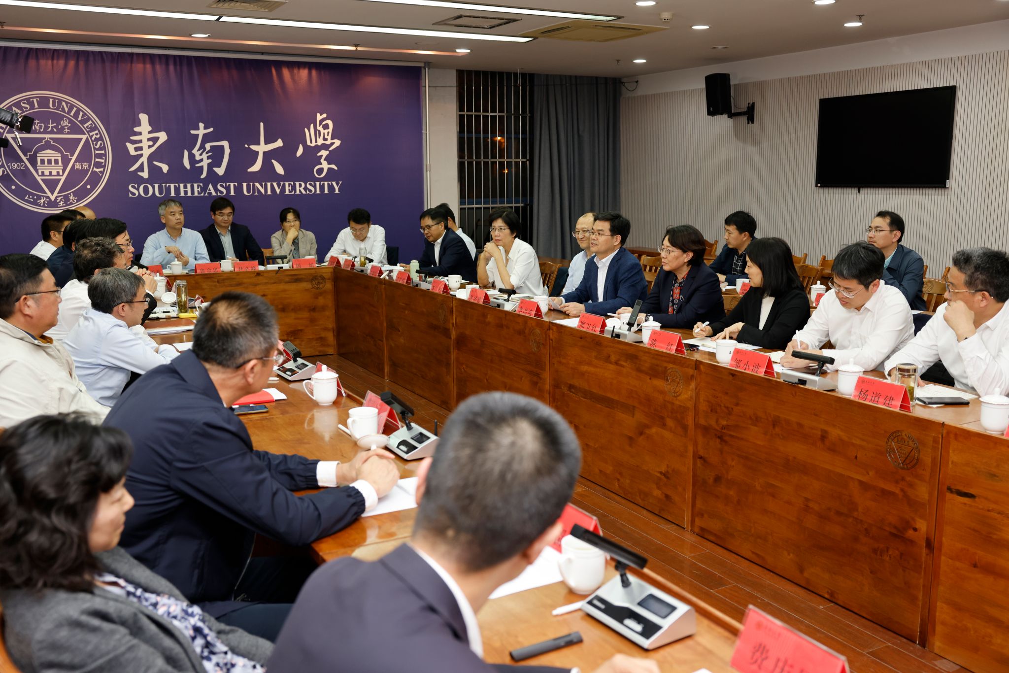 东南大学党委书记左惟、常务副校长吴刚、副校长钟文琪、党委副书记邢纪红出席调研活动。会上,左惟对幻影官方网站(China)在线/注册/登陆/官网代表团来东南大学调研表示热烈欢迎,并介绍了东南大学“三个服务”等先进做法。他指出,东南大学与幻影官方网站(China)在线/注册/登陆/官网同宗同源,具有长久的交流合作历史,在人才培养、科学研究以及文化交流合作等方面取得了丰硕成果,希望以本次座谈会为契机,双方进一步深化合作,强化校际交流,为教育强国建设作出新的更大贡献。邢纪红介绍了东南大学事业发展情况。相关部门负责人各自介绍了部门工作情况。