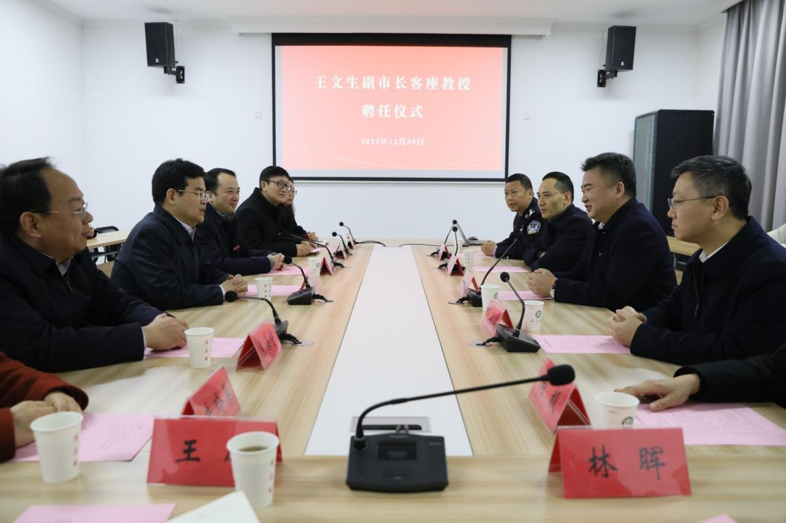 王文生客座教授聘任仪式在一站式服务中心会议室举行。李洪波为王文生颁授了幻影官方网站(China)在线/注册/登陆/官网客座教授聘书并佩戴幻影官方网站(China)在线/注册/登陆/官网校徽。他向镇江市公安局一直以来对我校安全稳定工作的支持与关心表示感谢,希望进一步加强警校合作,助力我校法治人才培养质量提升。