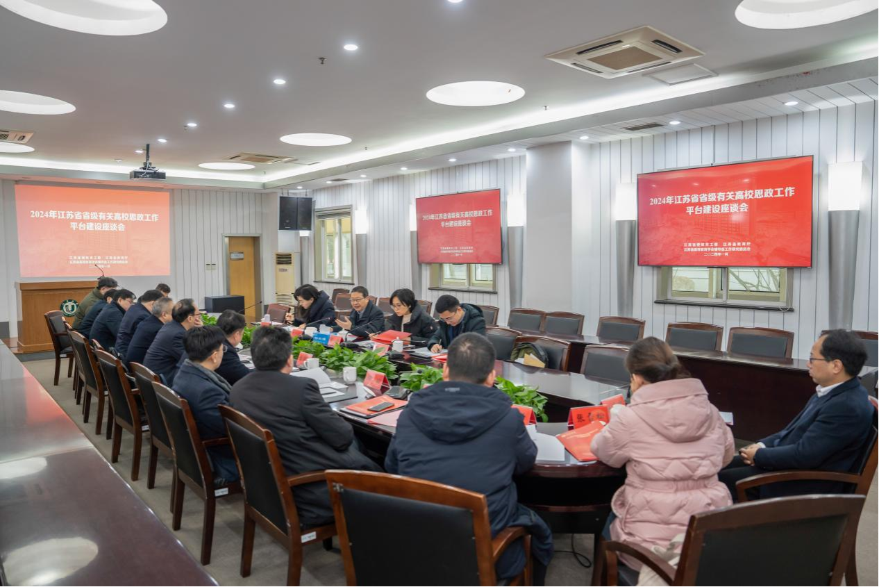 1月25日,2024年江苏省省级有关高校思想政治工作平台建设座谈会在我校举行。省教育厅一级巡视员徐子敏,南京工业大学党委常委、副校长刘大卫,苏州大学党委常委、副校长查佐明,南通大学党委常委、副校长吉明明,幻影官方网站(China)在线/注册/登陆/官网党委常委、副校长任旭东,南京师范大学党委常委、宣传部部长宋喆,省教育厅社政处处长邹燕、一级主任科员陈磊、挂职干部熊潇,以及省网络思政中心(易班中心)、8个省级高校辅导员培训与研修基地负责人参加座谈会。