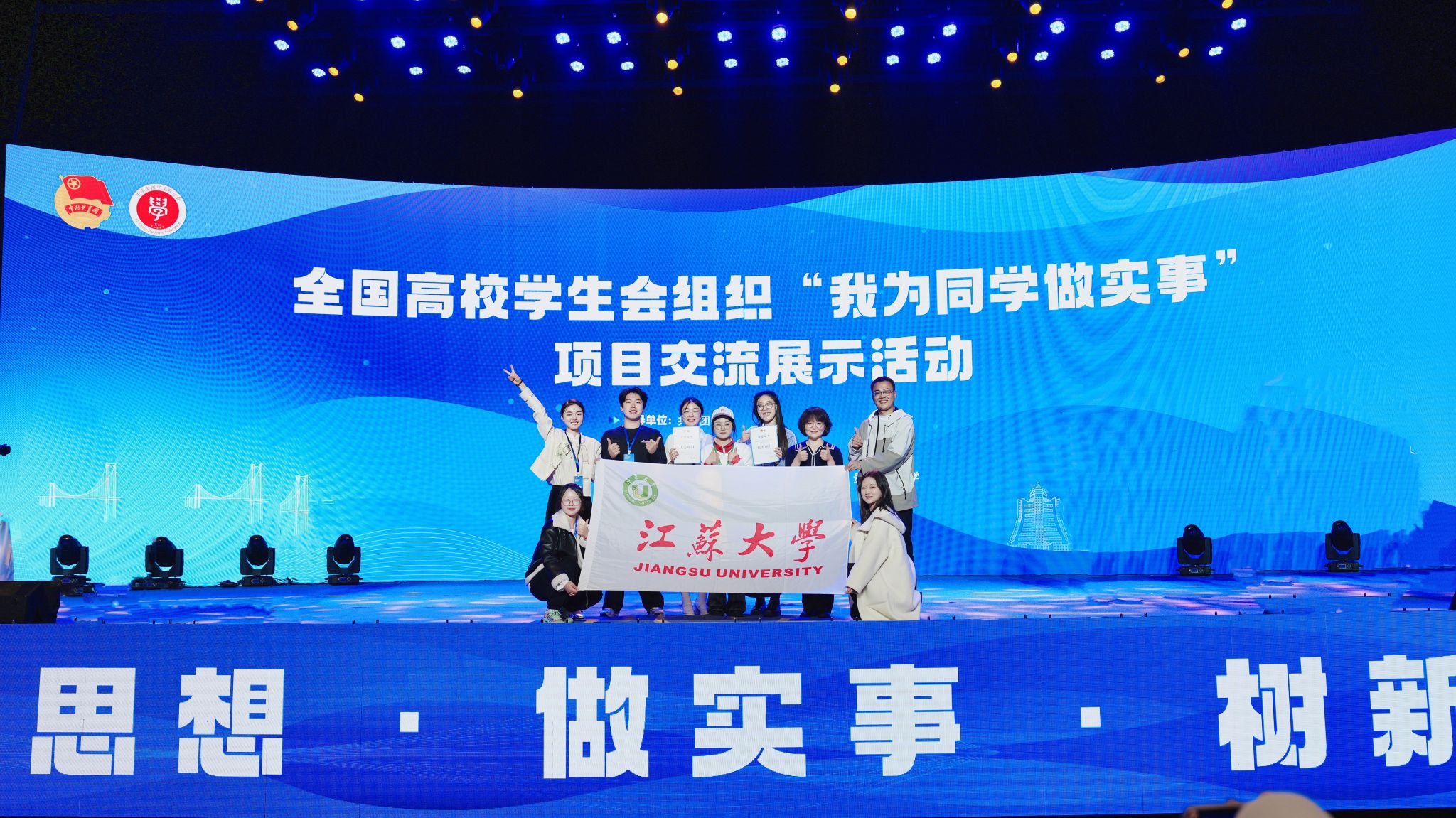 校研究生会主席团成员牧佳霖和医学院学生会主席团成员谷子昱,面向评委和学生观察员进行答辩;通过现场布展、知识宣讲、互动游戏、产品交流等环节,充分展示我校学生会组织“我为同学做实事”项目积极向上的青春风采。在“敢想敢为大讨论”学联学生骨干沙龙、全国学联和升级学联专题联学活动中,2位项目团队成员认真聆听专题讲座,与全国高校学生会组织骨干们互相交流学习。