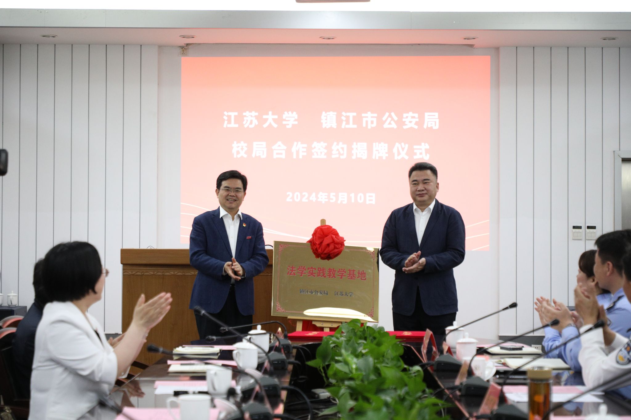 镇江市公安局办公室、法制支队相关负责人,我校法学院(纪检监察学院)领导班子成员及部分师生代表参加签约仪式。(法学院(纪检监察学院))