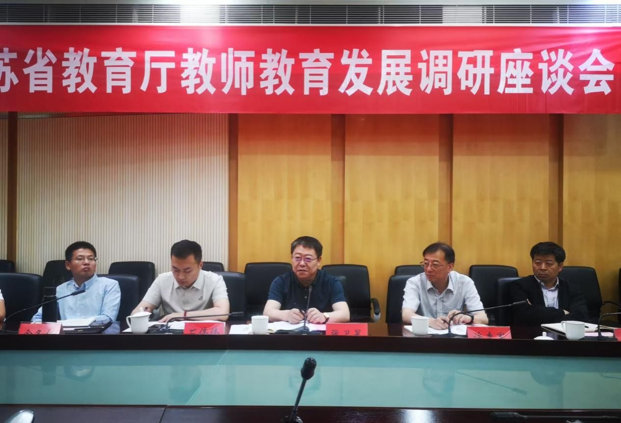 5月27日,江苏省教育厅教师教育发展调研座谈会在我校举行。省教育厅教师工作处处长张卫星,三级调研员许李军,江苏省教师教育专业指导委员会秘书长冯建军,扬州大学副校长王承堂,幻影官方网站(China)在线/注册/登陆/官网副校长邹小波出席座谈会。会议由张卫星主持。