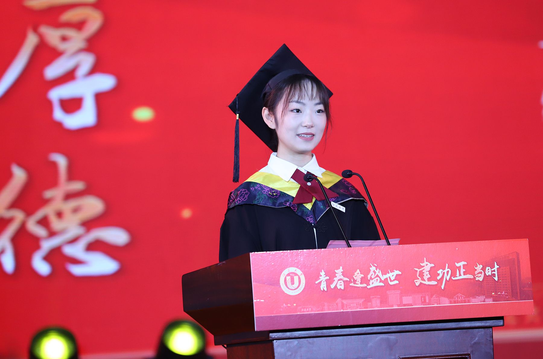 教师代表、食品与生物工程学院副院长石吉勇,校友代表、深圳铭利达精密技术股份有限公司董事长、校友企业家联盟主席陶诚,毕业研究生代表、材料科学与工程学院陈乐利同学,毕业本科生代表、机械工程学院刘欣然同学,毕业留学生代表、医学院杨靖同学分别在典礼上发言。