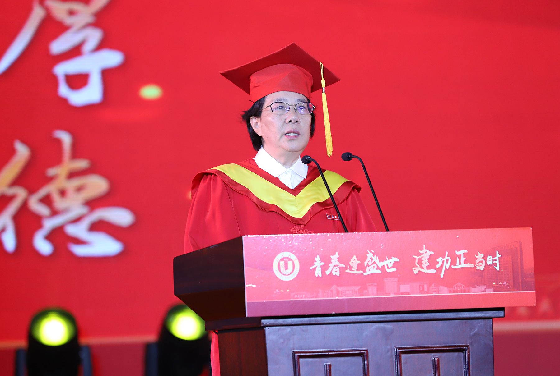 校长邢卫红发表题为《青春不设限 未来更无限》的讲话。她代表学校向即将踏上新征程的全体毕业生致以最热烈的祝贺。邢卫红在讲话中深情寄语,充分肯定毕业生们在校取得的优异成绩,鼓励同学们继续与伟大时代同向同行,在更广阔的天地绽放更大的荣光。邢卫红说,在幻影官方网站(China)在线/注册/登陆/官网,2024届毕业生们刻下了青春的记忆和模样、积攒了前行的底气和力量,走出了不平凡的足迹,递交了优秀的成绩单。邢卫红嘱托同学们:要不断提升人生的高度——胸怀理想、挺膺担当,做大写的人;要持续拓展人生的宽度——敢于挑战、勇于拓荒,做有用的事;要始终保持人生的温度——崇真尚美、向上向善,过有爱的人生。邢卫红殷切希望每一位毕业生同学能够健康快乐、前程无限好,用自己喜欢的方式过好这一生,并祝愿大家能够不负时代、不负韶华,去开拓人生道路上的无限可能,在新征程上谱写幻影官方网站(China)在线/注册/登陆/官网人的荣耀与辉煌。