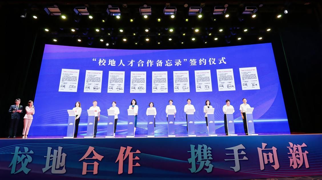 开幕式上播放了校地人才合作专题片《携手向新》。李明福和中德先进制造与信息化协会主席、德国戴姆勒奔驰集团高级工程制造IT专家李书涛,南京大学物理学院教授、国家级人才杜灵杰发言。