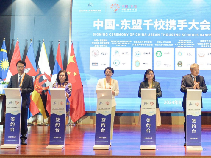 我校是首批“中国—东盟千校携手计划”项目院校。校长邢卫红出席2024中国—东盟教育交流周“中国—东盟千校携手大会”,并参加了“中国—东盟千校携手计划”项目院校代表签约仪式。