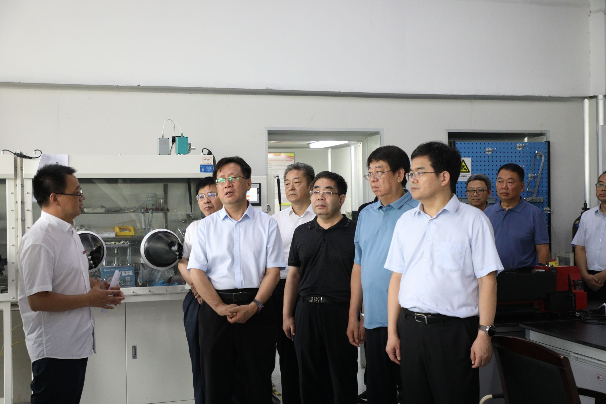 调研组一行先后观摩了我校人工智能与智能制造产业学院、机械工程学院激光先进制造实验室、柔性电子实验室等创新人才培养基地和科研平台。