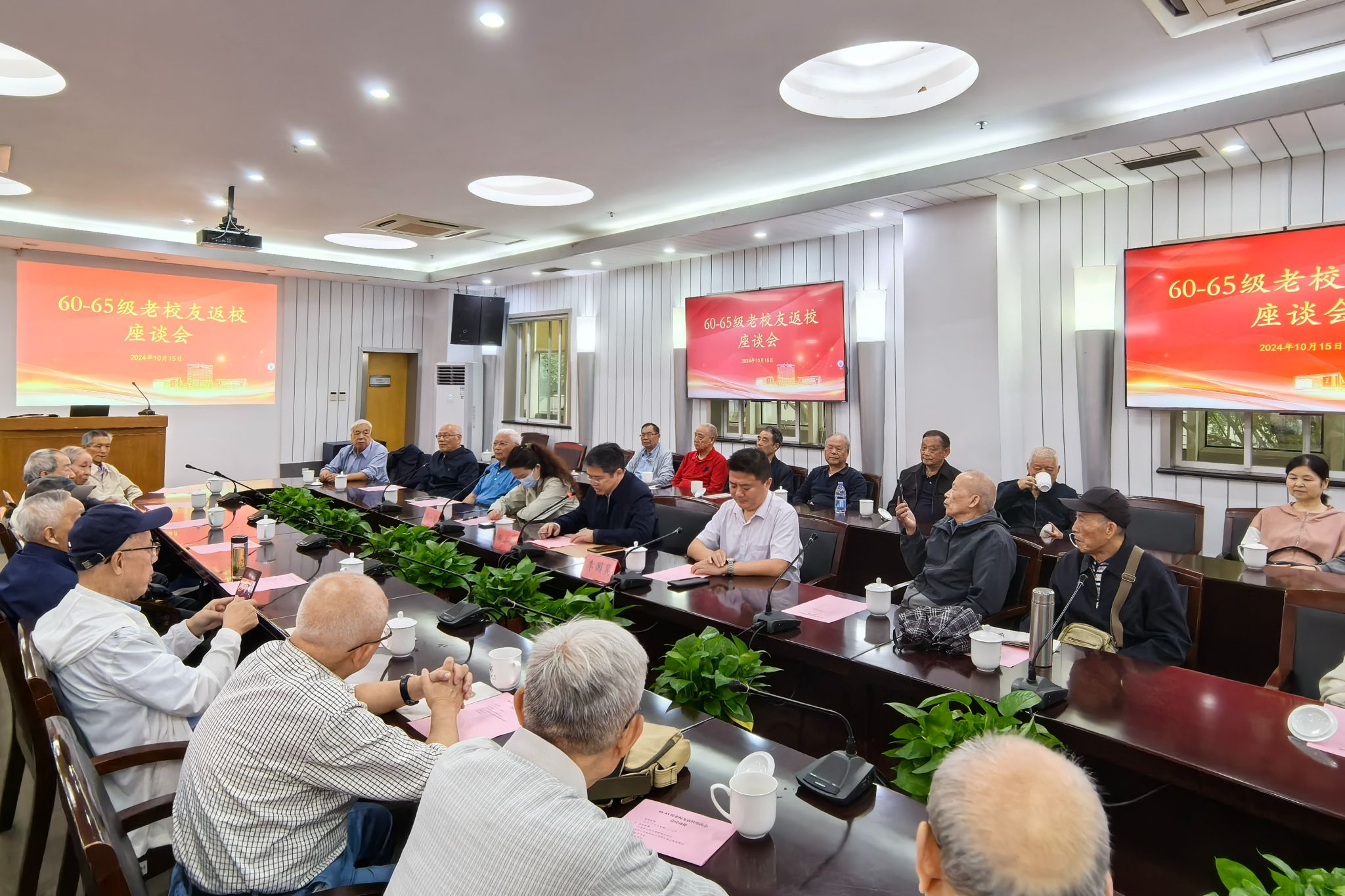 会上,60-65级校友倾诉六十载的离别之情,重温昔日同窗时光。他们回顾了这几十年来彼此的工作、生活,并表达了对母校、恩师的感恩之情,同时也表示希望能为学校发展贡献自己的一份力量。
