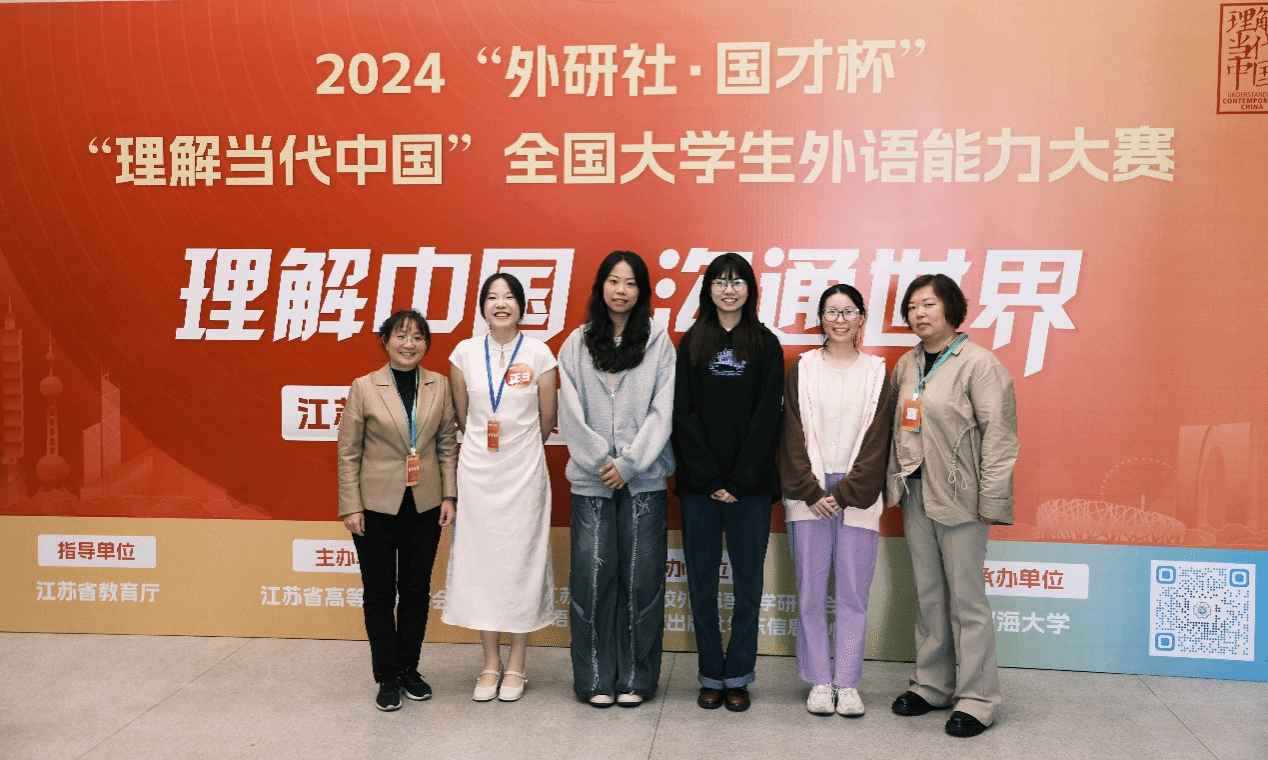 11月1日至3日,2024“外研社•国才杯”“理解当代中国”全国大学生外语能力大赛江苏赛区英语组演讲比赛在河海大学举行,全省高校173名选手参加比赛。外国语学院三位同学进入省赛,最终潘烨菲同学获得演讲组冠军,晋级国赛,创造了我校学子在该项赛事上的最佳成绩。