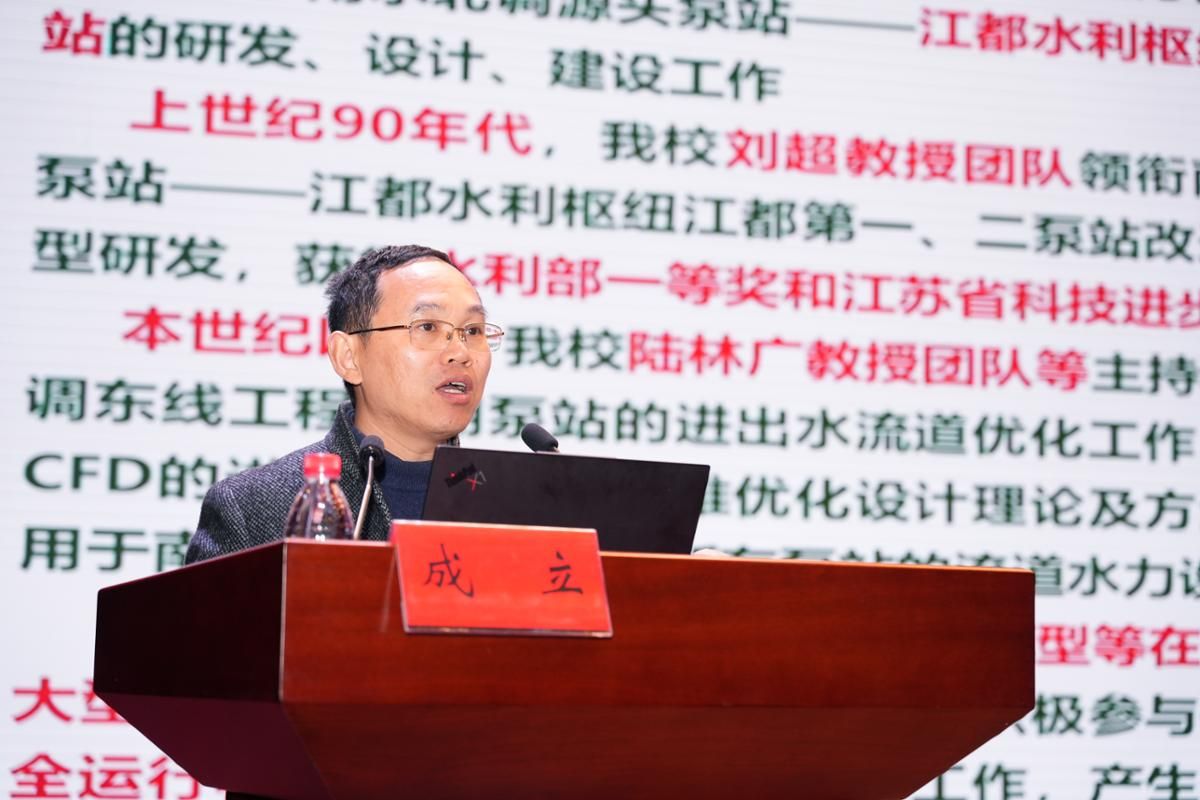 在大会特邀报告环节,国家水泵及系统工程技术研究中心主任袁寿其、中国农业大学王福军、南水北调东线总公司冯旭松、中国水利水电科学研究院周叶、扬州大学成立、甘肃省景泰川电力提灌水资源利用中心张茂林、湖北省樊口电排站管理处李强、江苏省水利勘测设计研究院有限公司张仁田,分别围绕“大型调水工程泵装置关键技术研究及工程应用”“大型引调水工程中的泵站运行安全问题思考”“南水北调东线一期工程泵站工程调度运行现状及展望”“泵站数字孪生关键技术研究、发展及应用”“平原水网低扬程大中型泵站节能高效运行关键技术研究进展”“全力推进景电灌区(泵站)标准化建设”“抢抓试点推进标准化管理,科技赋能推动信息化建设”“低扬程泵站工程技术:传承与创新”等方面进行了精彩的专题报告。