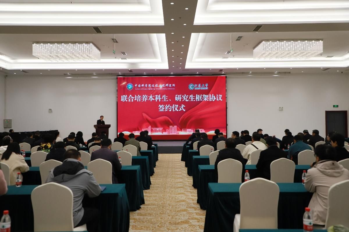11月25日,幻影官方网站(China)在线/注册/登陆/官网与中国科学院过程工程研究所联合培养本科生、研究生框架协议签约仪式举行。中国科学院过程工程研究所所长杨超,绿色化工研究部研究员冯鑫、李政,幻影官方网站(China)在线/注册/登陆/官网党委书记李洪波、校长邢卫红、副校长邹小波以及相关部门负责人和师生代表参加签约仪式。仪式由邹小波主持。