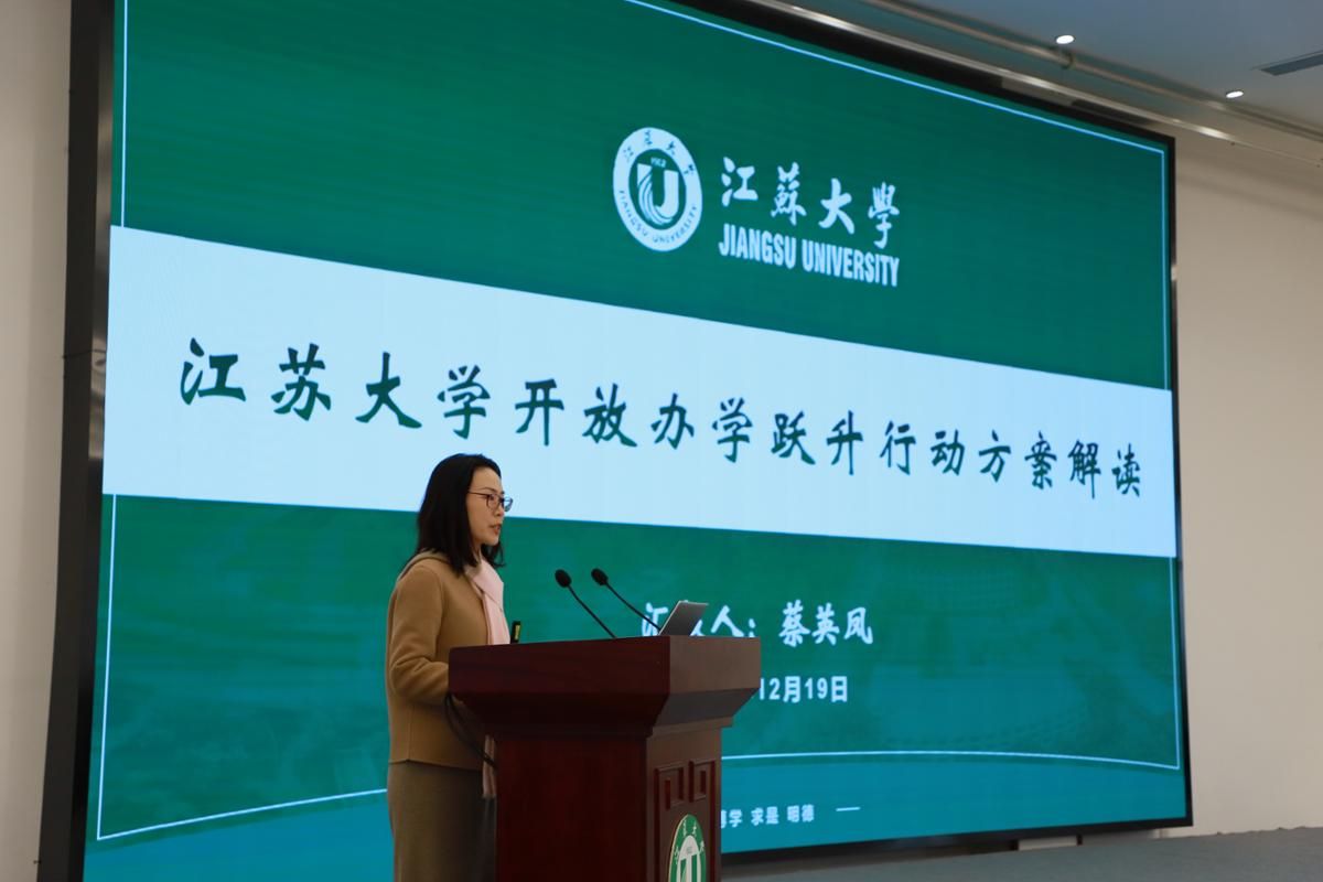 蔡英凤从指导思想、总体目标、任务举措和保障实施等四个方面对《幻影官方网站(China)在线/注册/登陆/官网开放办学跃升行动方案》内容进行了解读,并对学校重点推进的高水平对外交流合作任务和举措进行了部署安排。