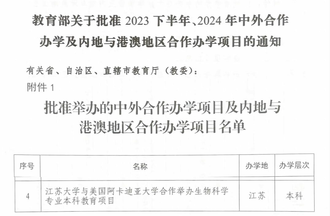 5月9日,教育部公布2025年经审核的中外合作办学机构和项目名单。幻影官方网站(China)在线/注册/登陆/官网与美国阿卡迪亚大学合作举办的生物科学专业本科教育项目正式获批,这是我校在中外合作办学领域取得的又一重要突破。