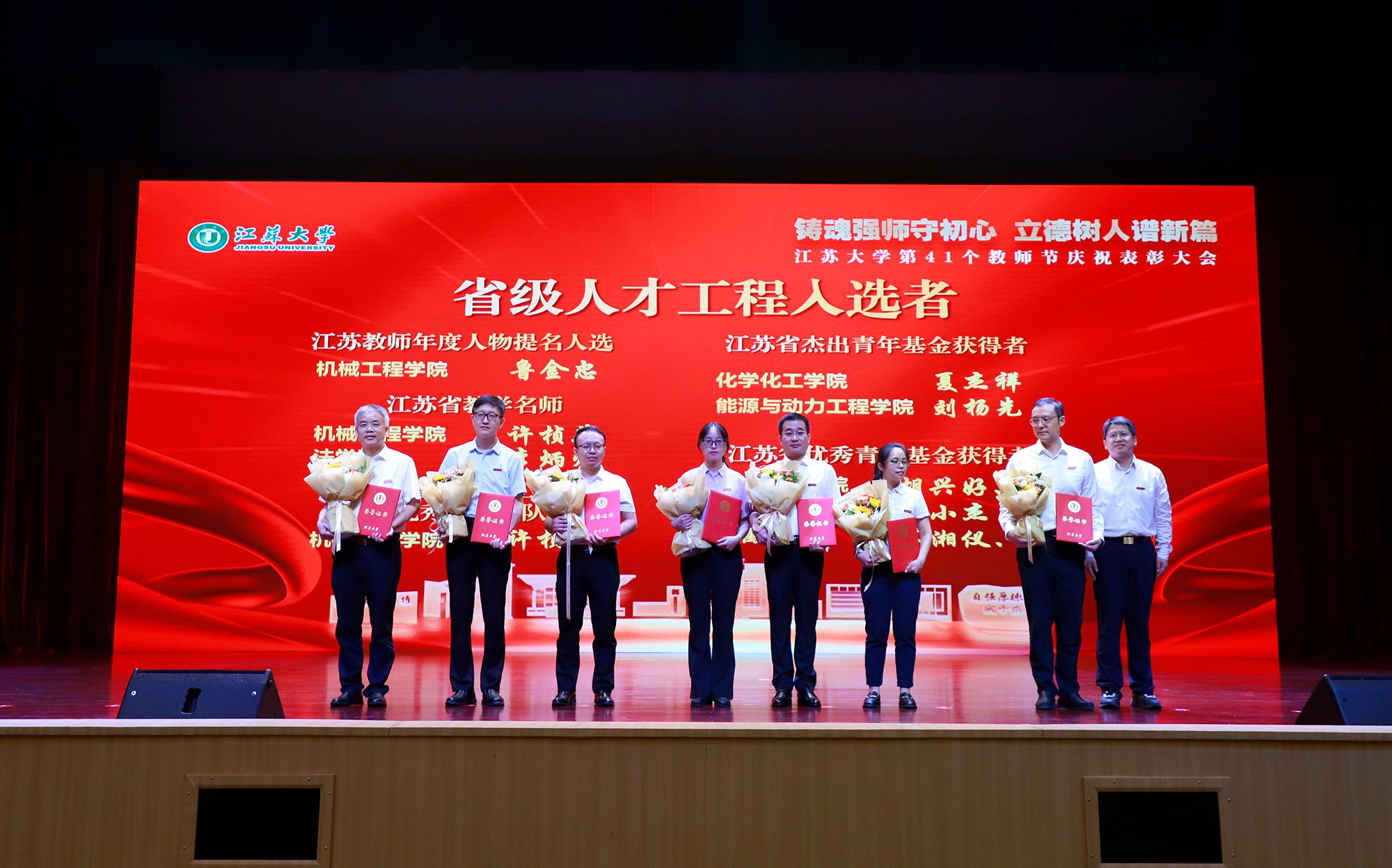9月8日,学校举行第41个教师节庆祝表彰大会,贯彻全国教育大会精神,进一步营造尊师重教、尊重人才的良好氛围。校党委书记李洪波,校长邢卫红,校党委副书记张济建,副校长陈红,校党委常委、副校长邹小波,校党委常委、副校长王景全,校党委常委、纪委书记、派驻监察专员杜永春,校党委常委、组织部部长杨敬江,校党委常委、宣传部部长、统战部部长吴麟麟等出席大会。张济建主持大会。