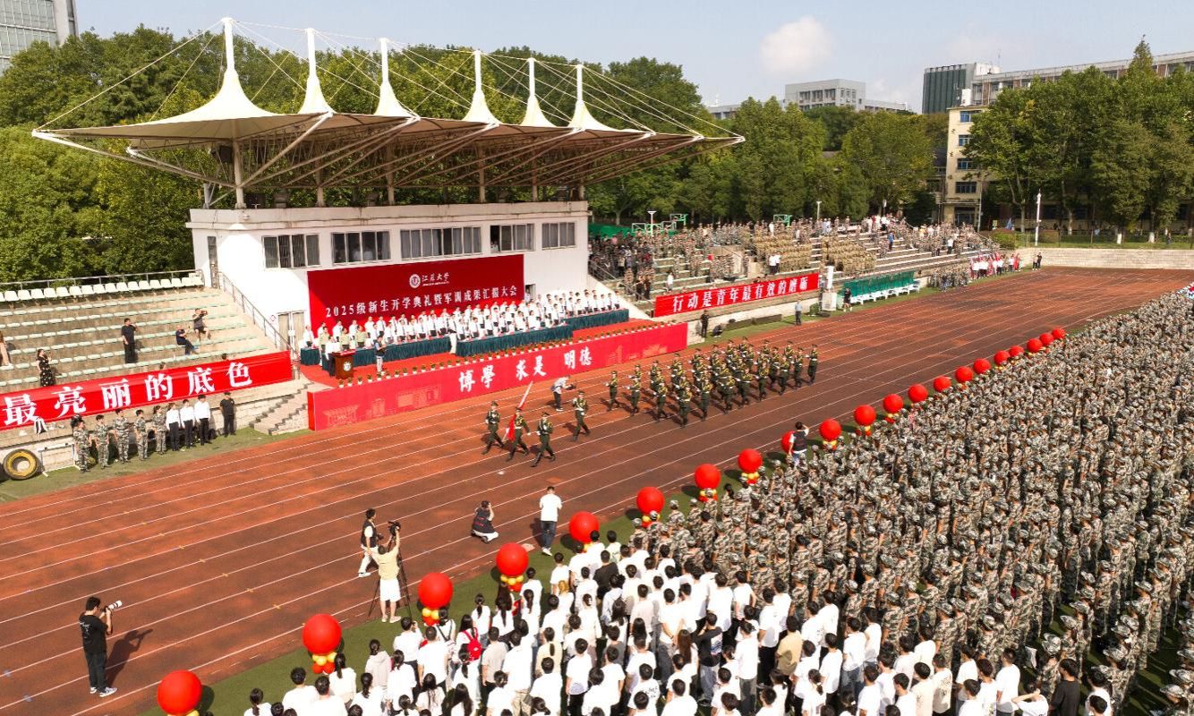 9月23日,2025级新生开学典礼暨军训成果汇报大会在东山操场举行。全体在校校领导、党委常委,校友代表,相关部门和各学院、书院主要负责人,教师、辅导员代表,全体2025级新生参加开学典礼。