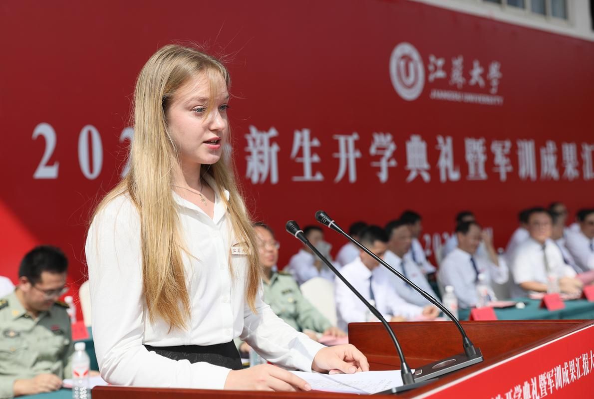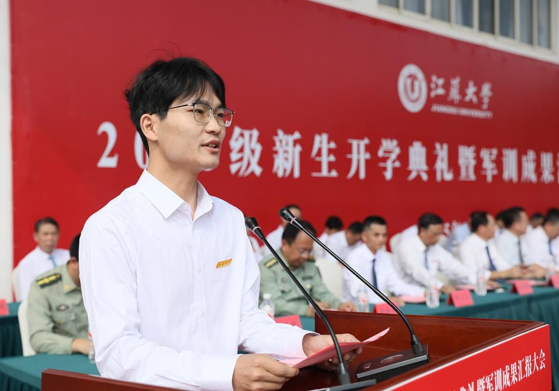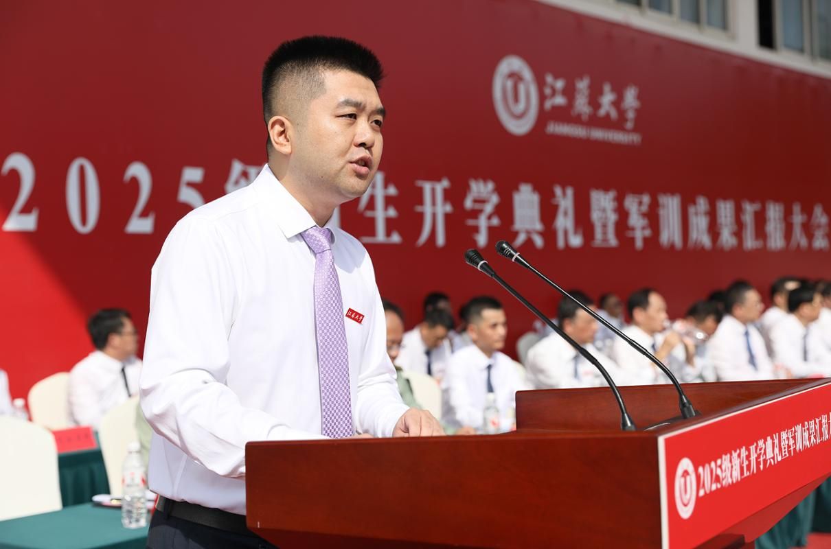 教师代表、江苏特聘教授、国家优秀青年科学基金获得者、能源研究院博士生导师姜志锋教授,84级校友代表、合肥友高物联网标识设备有限公司董事长陈文正,老生代表、校研究生会主席团成员、管理学院物流工程与管理专业硕士研究生陈怡冰,新生代表、机械工程学院仪器科学与技术专业博士研究生陈赛赛,新生代表、汽车与交通工程学院车辆工程专业本科生王晨旸,新生代表、财经学院国际经济与贸易专业留学生柯莉丝在典礼上分别发言。