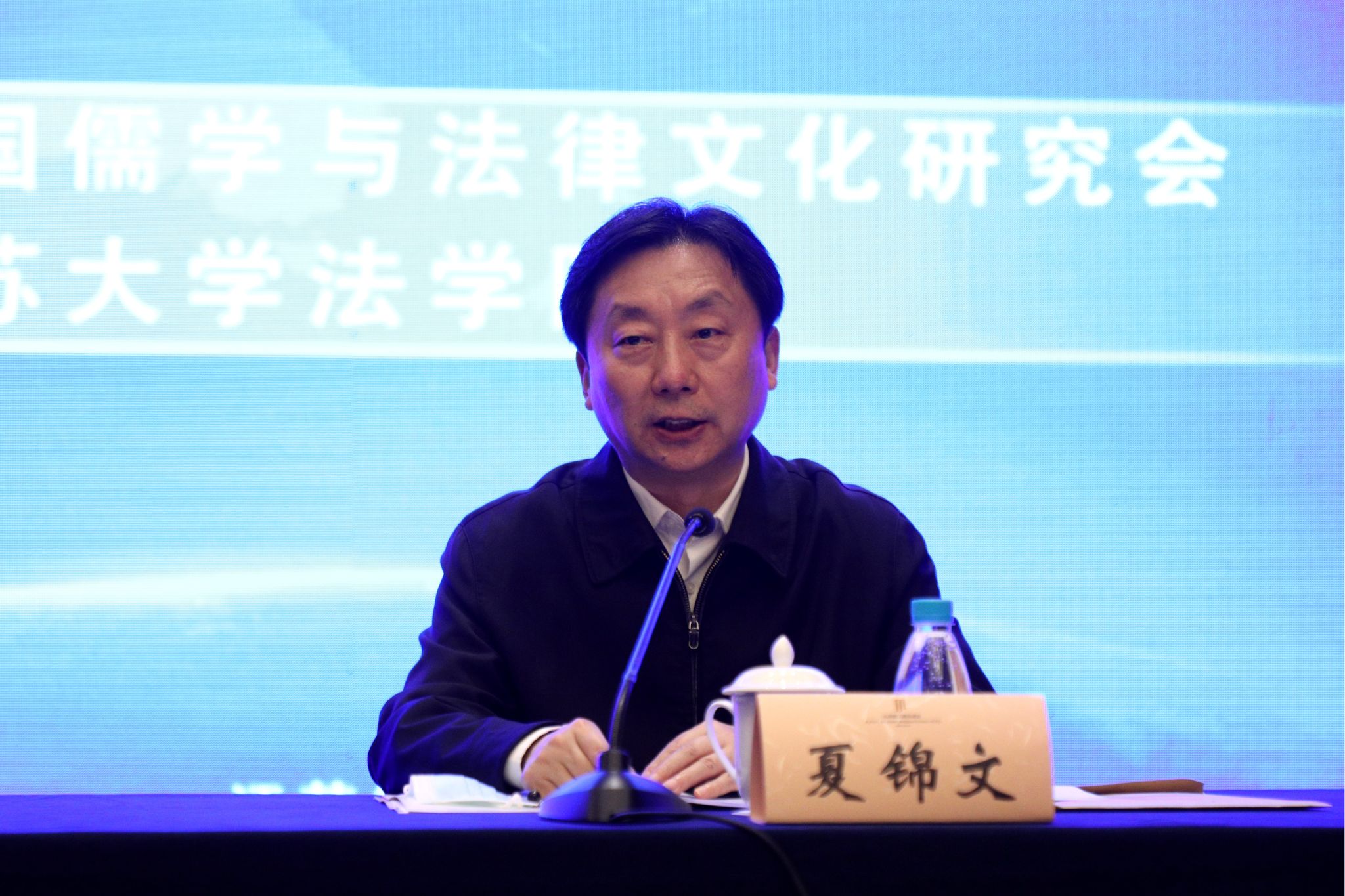 江苏省社会科学院党委书记、院长,中国儒学与法律文化研究会执行会长夏锦文主持开幕式并发表主题演讲。镇江市委常委、市委政法委书记、市法学会会长许文,中国儒学与法律文化研究会会长、华东政法大学教授龚汝富,我校校长颜晓红,江苏师范大学法学院党委书记张明新出席开幕式。南京大学法学院教授张仁善,华东政法大学教授王沛,中国人民大学尤教授陈俊、朱腾,复旦大学教授王志强等国内知名学者参加研讨会。