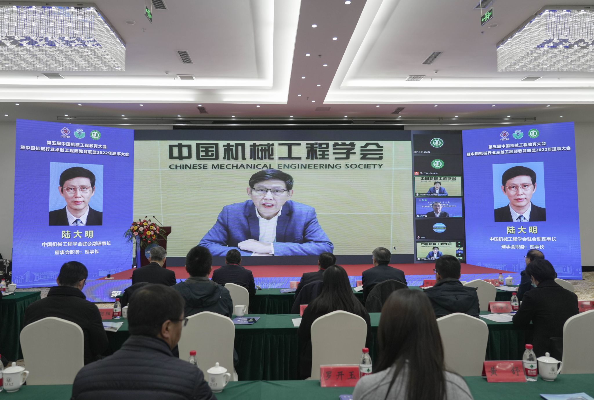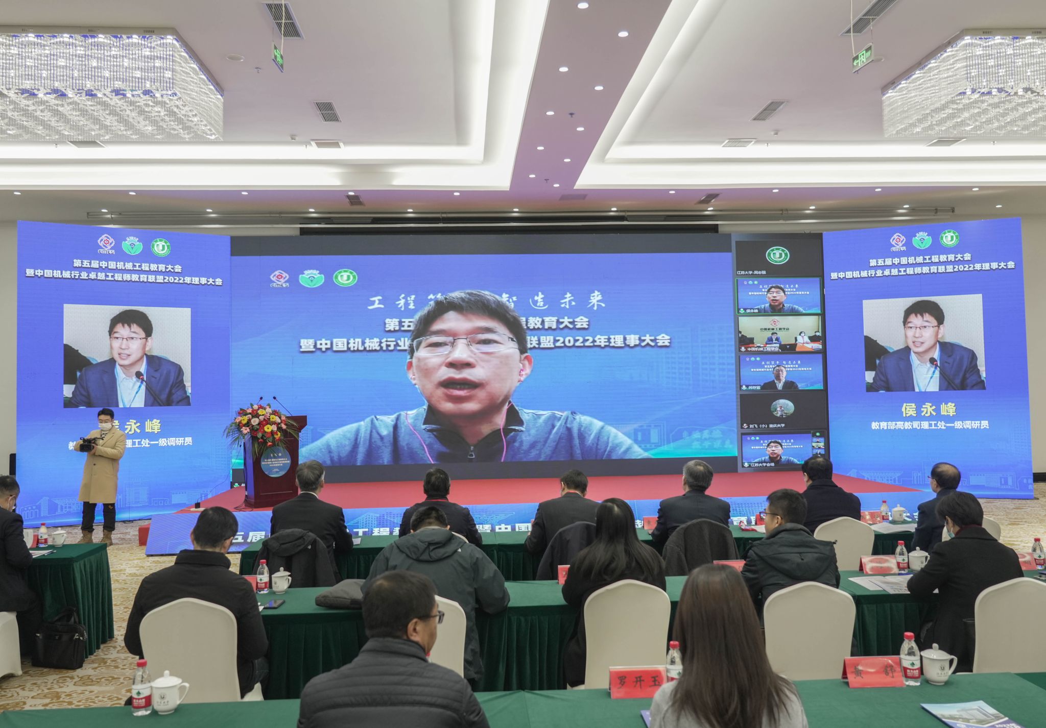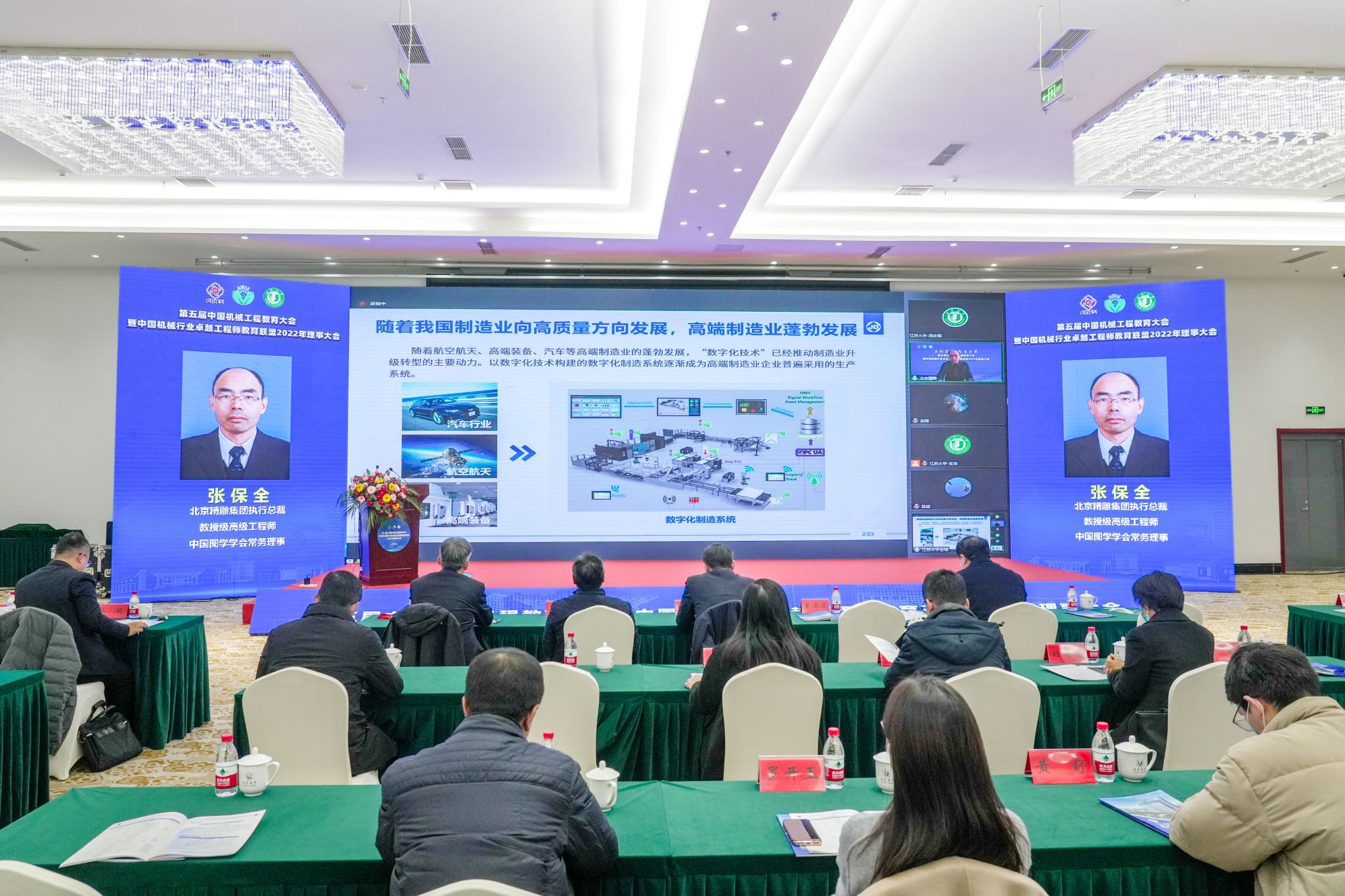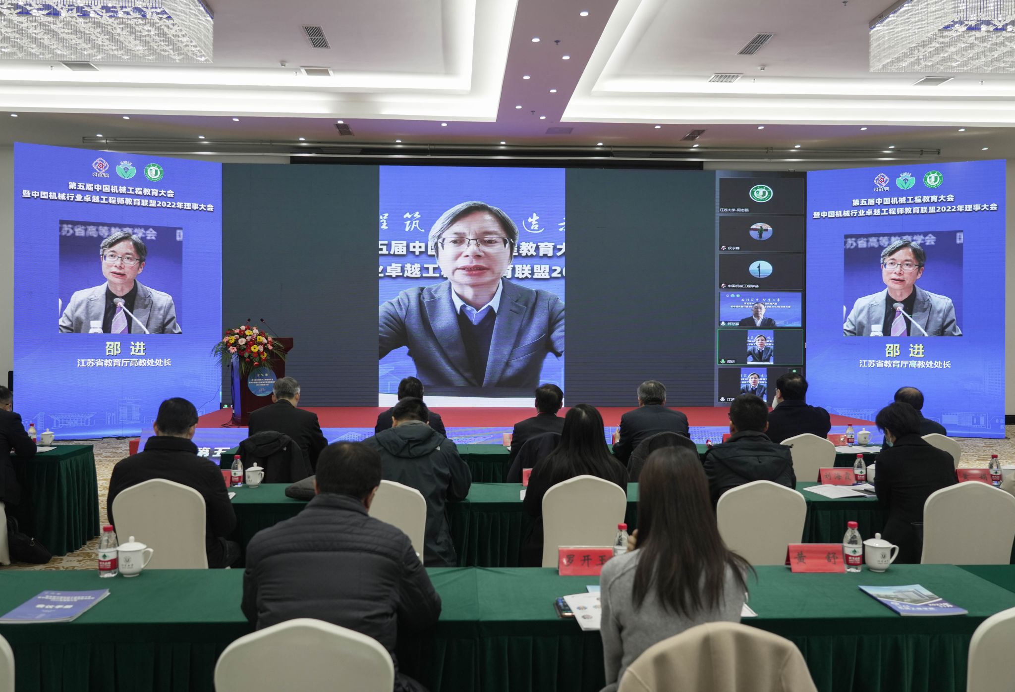 中国机械工程学会驻会副理事长陆大明,大连理工大学常务副校长、中国科学院院士贾振元,国机集团党委常委、副总经理、总工程师、中国工程院院士陈学东,教育部高教司理工处一级调研员侯永峰,中国科协组织人事部人才工作处处长宫飞,江苏省教育厅高教处处长邵进,教育部机械类教学指导委员会主任、东北大学原校长赵继,幻影官方网站(China)在线/注册/登陆/官网党委书记袁寿其,扬州大学校长丁建宁,中国机械工程学会秘书长助理兼教育培训处处长王玲,中国机械工程学会专务罗平,各联盟理事单位的副理事长、常务理事、理事,全国各高校的领导、骨干教师和企业专家,以及幻影官方网站(China)在线/注册/登陆/官网、扬州大学、江苏科技大学师生代表等线上线下参加会议。中国机械行业卓越工程师教育联盟秘书长何存富主持大会。