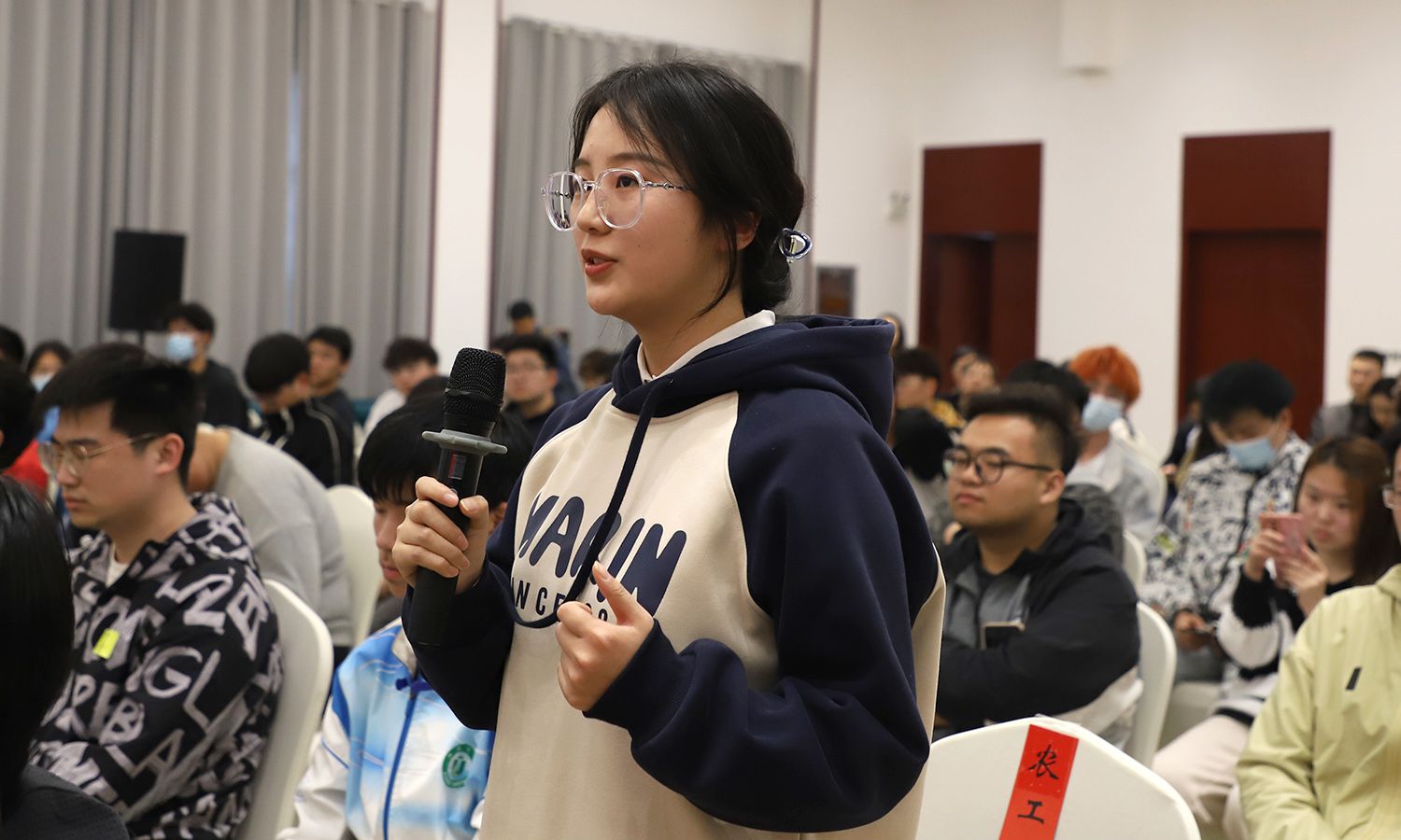 魏巧向师生传达了习近平总书记在参加江苏代表团审议时的重要讲话精神。习近平总书记指出,农业强国是社会主义现代化强国的根基,推进农业现代化是实现高质量发展的必然要求。魏巧表示,将带着习近平总书记的嘱托,和团队一道积极推进农业生态产业化系统建设,以科技创新助力更多农产品品质提升。