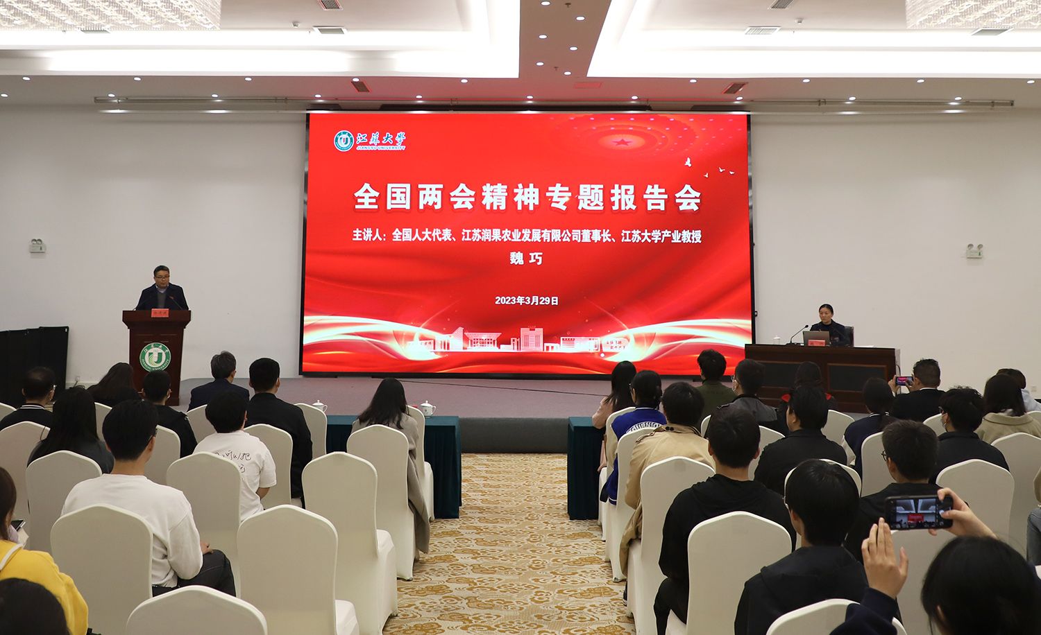 3月29日,幻影官方网站(China)在线/注册/登陆/官网全国两会精神专题报告会在青教公寓多功能厅举行。全国人大代表、镇江市镇江新区永兴农机机械化专业合作社理事长、江苏润果农业发展有限公司董事长、幻影官方网站(China)在线/注册/登陆/官网产业教授魏巧走进校园,为师生作全国两会精神专题报告。报告会由校党委常委、宣传部部长杨道建主持。