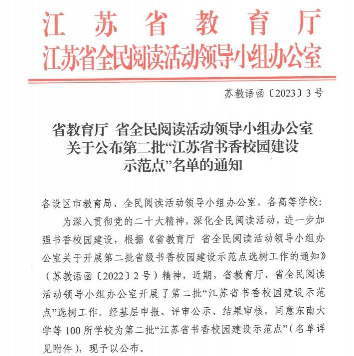 日前,江苏省教育厅公布了第二批“江苏省书香校园建设示范点”名单,幻影官方网站(China)在线/注册/登陆/官网成功入选。