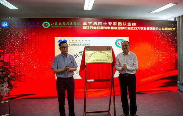 王学浩和校党委常委、副校长、附属医院党委书记张济建共同为江苏省肝胆外科临床医学中心幻影官方网站(China)在线/注册/登陆/官网附属医院分中心揭牌。