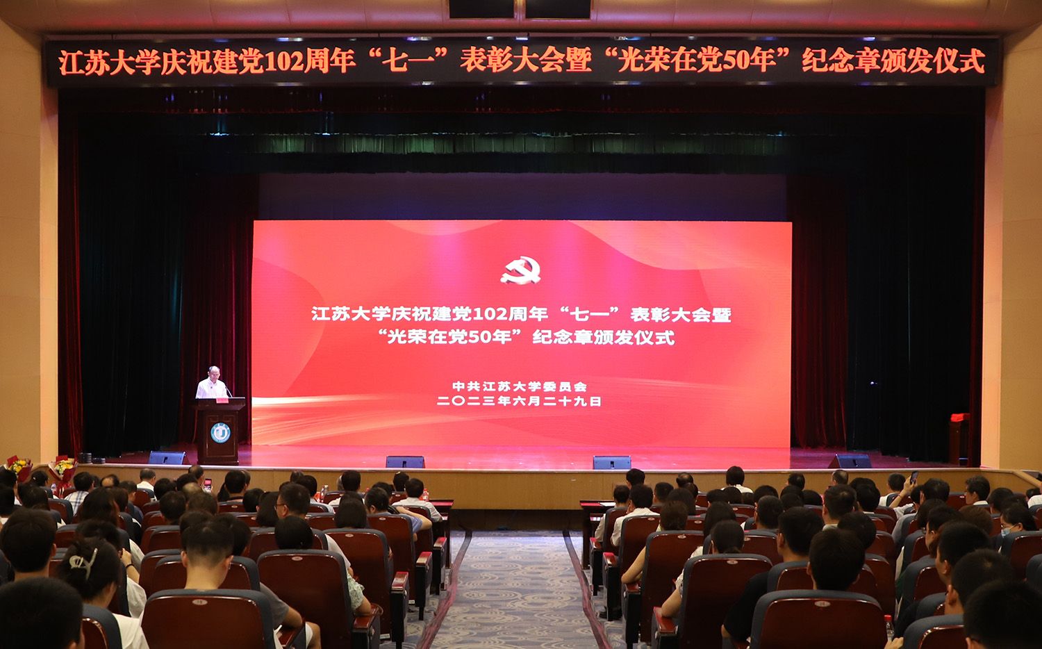 “光荣在党50年”党员代表,校各部门主要负责人,各二级党组织书记、副书记、党务办主任,受表彰集体和个人,党支部书记和新党员代表等参加大会。(党委组织部 党委宣传部)