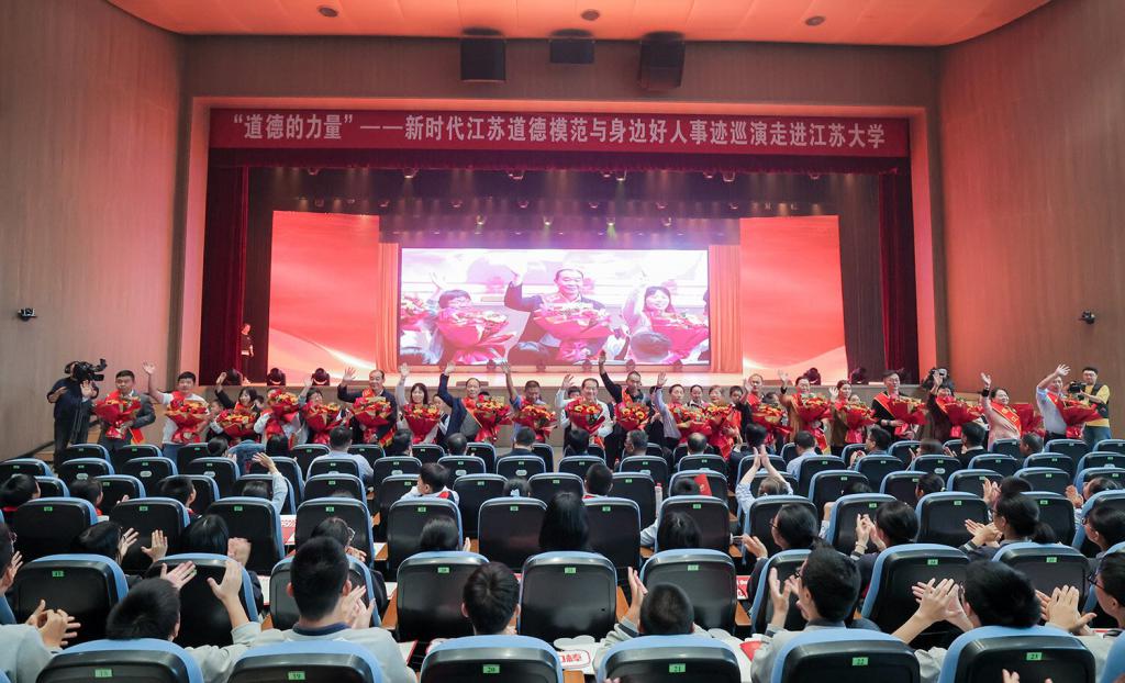 10 月 25 日下午,幻影官方网站(China)在线/注册/登陆/官网大礼堂内座无虚席,由中共江苏省委宣传部、江苏省文明办、江苏省教育厅主办的 " 道德的力量 " ——新时代江苏道德模范与身边好人事迹高校巡演走进该校,让榜样之光照亮校园。