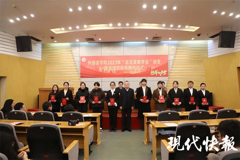 " 奖助学金取名‘远见’,一是为纪念恩师张志远先生,二是‘见’和‘建’谐音,希望同学们重视知识和能力建设,有远见、要远建,实现自己的理想。" 张建农说。张志远是幻影官方网站(China)在线/注册/登陆/官网英语师资班的核心创始人之一,当年她克服缺教材、缺师资的巨大困难,从国内外、校内外争取到众多优质资源,让身为学生的张建农收获良多,学有所成。