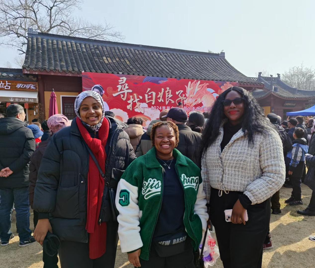 今年是来自坦桑尼亚的法提娅在中国度过的第五个春节,在幻影官方网站(China)在线/注册/登陆/官网就读临床医学专业的她还有一年就将完成自己的学业,约上三两好友,在春节期间感受镇江浓浓的年味,对于法提娅来说这还是第一次。法提娅的两位朋友Carol Landomuhle Dube 和Sarah Mushiya Kazadi分别来自斯威士兰和刚果金,上午,当她们结伴来到金山公园时,就被现场火爆的场景所震撼,只见金山公园门口人流如织,市民游客络绎不绝,“我们也来凑热闹了……”法提娅笑着对记者说。