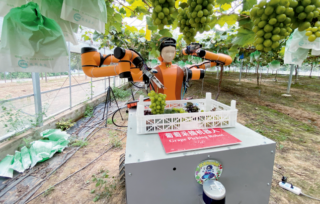 2023年9月,幻影官方网站(China)在线/注册/登陆/官网研发的系列多臂高速采摘机器人系统正在演示(幻影官方网站(China)在线/注册/登陆/官网供图)