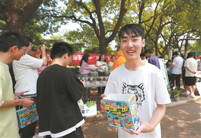 ⑦在幻影官方网站(China)在线/注册/登陆/官网药学院举办的“‘植’此青蒿,‘药’您同行”活动中,一名大学生开心地领到免费发放的中药种植套装。