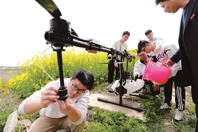图② 幻影官方网站(China)在线/注册/登陆/官网跃然创客工作室的大学生们在做第五代直线型无人植保飞行器实操作业准备。