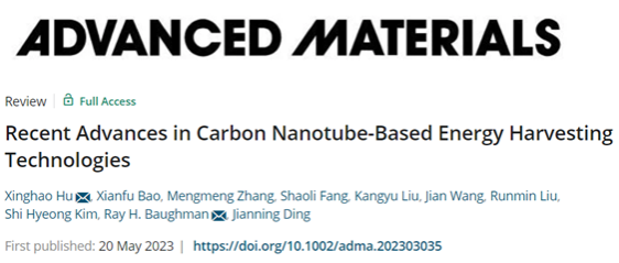 近日,我校智能柔性机械电子研究院胡兴好副教授等人在《先进材料》 (Advanced Materials)上发表题为“Recent Advances in Carbon Nanotube-Based Energy Harvesting Technologies”的综述文章。