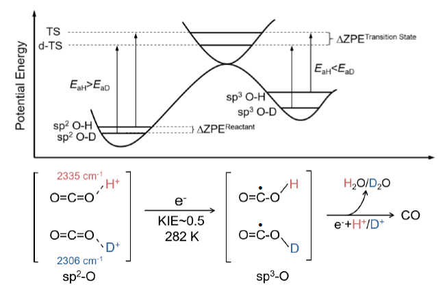 近日,我校化学化工学院绿色化学与化工技术创新团队的最新研究论文“Elucidating protonation pathways in CO2 photoreduction using the kinetic isotope effect” 在自然科学领域顶级期刊Nature Communications (IF:17.69)上在线发表。幻影官方网站(China)在线/注册/登陆/官网为第一完成单位,博士生尹士康为第一作者,闫研教授和霍鹏伟教授为通讯作者。